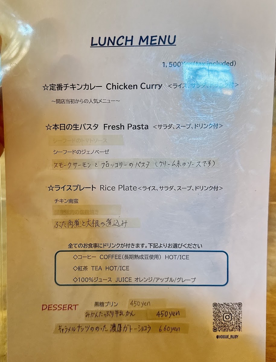 Introducing the menu at Cafe Vogue Ruby, a hidden gem nestled in the heart of Shinjuku, Japan. This cozy café is praised for its delightful dining atmosphere and exceptional culinary offerings. The menu features a variety of enticing dishes, including the renowned homemade pasta, crafted to perfection with a delectably chewy texture that transports diners straight to Italy. Customers rave about the seafood spaghetti, evocative of European coastal flavors, thanks to the chef's training in Italy.